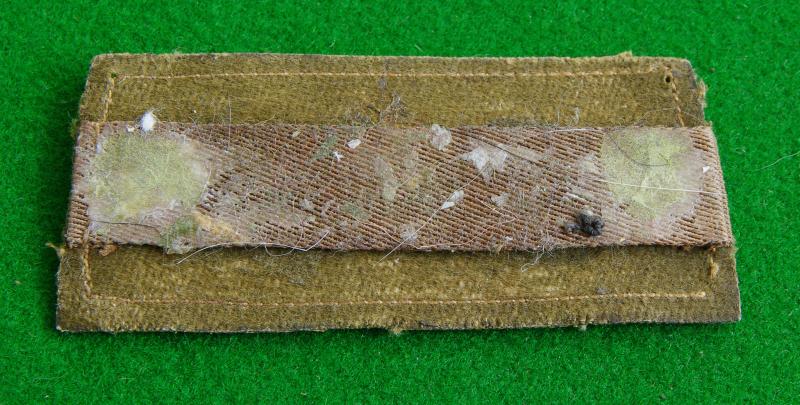 WW I printed in white on khaki shoulder strap slip-on, "R.A.M.C." with canvas loop to the reverse.