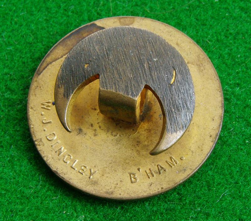 Brass and enamel lapel badge with buttonhole fitting and makers details for Dingley Birmingham to the reverse. The king's crown to the centre of a blue and white enamelled circlet bearing the titles. " On War Service " and the Company name," Fairfield" {Based on the River Clyde in Glasgow "Fairfield's were well known ship-builders}