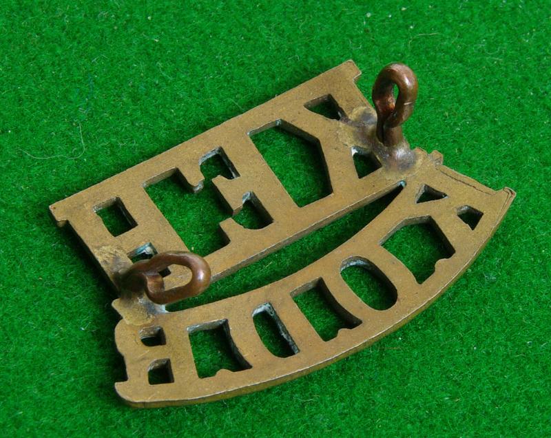 Scarce brass shoulder title, K E H / K.O.D.R." {One loop slightly twisted}