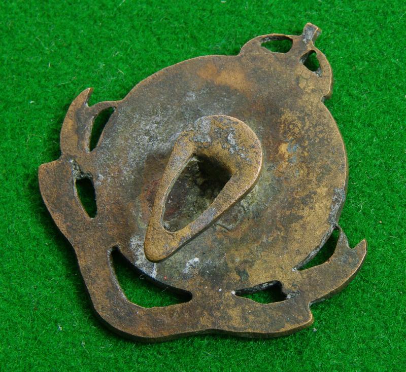 Unusual king's crown large brass lapel badge with buttonhole fitting to the reverse. A crowned large cross on a rayed background to the centre of a circlet bearing the title, " 31st.County of London 1941" above the furled scroll, " Women's First Aid" {Apprx 5 cms high} {Centre possibly originally enamel of painted?} {Reverse heavily stained}