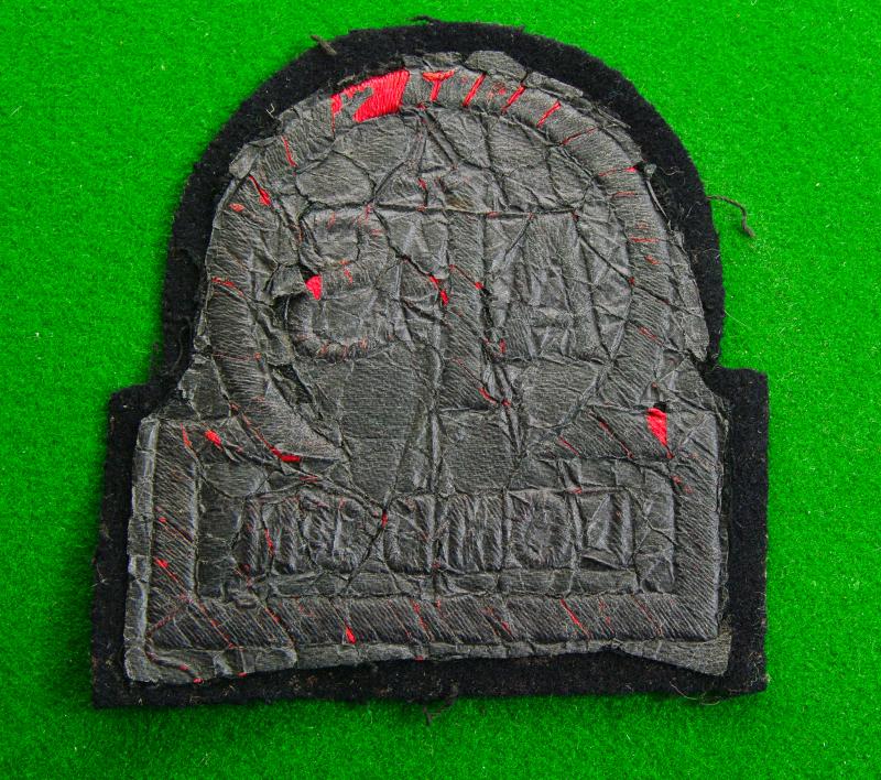 WW II embroidered in red on black fireman's tunic / overall badge. The " AFS " monogram above the designation, " London" within a red border on a shaped black backing.