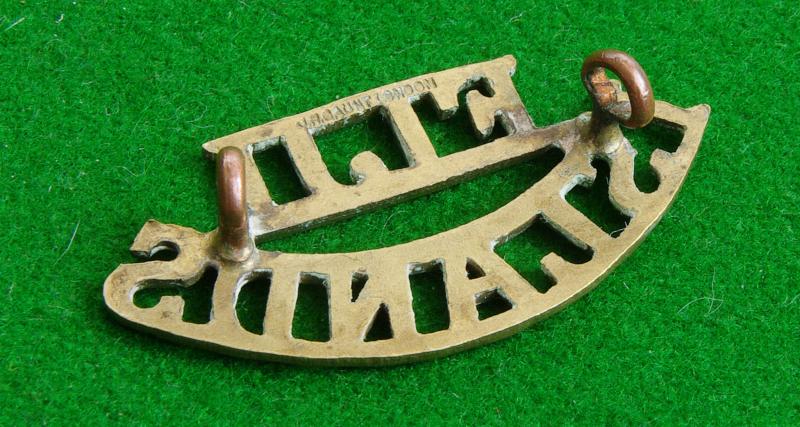 Scarce early pattern brass shoulder title, " Fiji / Islands" with makers details for Gaunt London to the reverse.