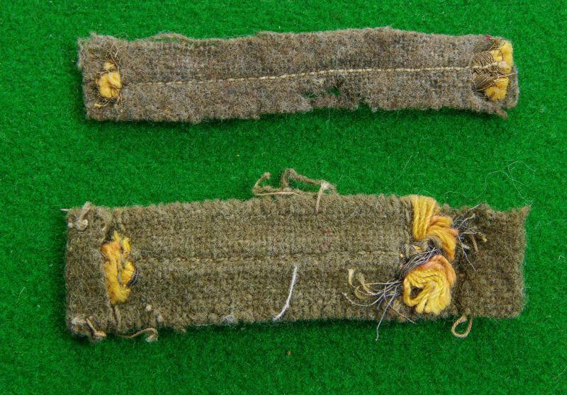 Two WW I officers wound stripes in gold bullion wire on a khaki backing. {Bullion wire tarnished with age}