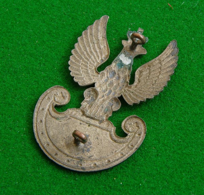 White metal cap badge with two loops to the reverse. The Polish Eagle upon a shield shape.