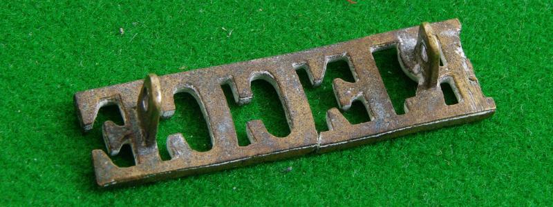 Scarce brass overseas made shoulder title with two integral lugs to the reverse, " Recce"