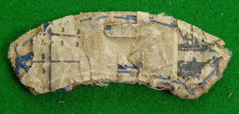 WW II blue on red embroidered shoulder title, " S.E.A.C." {Some mothing}