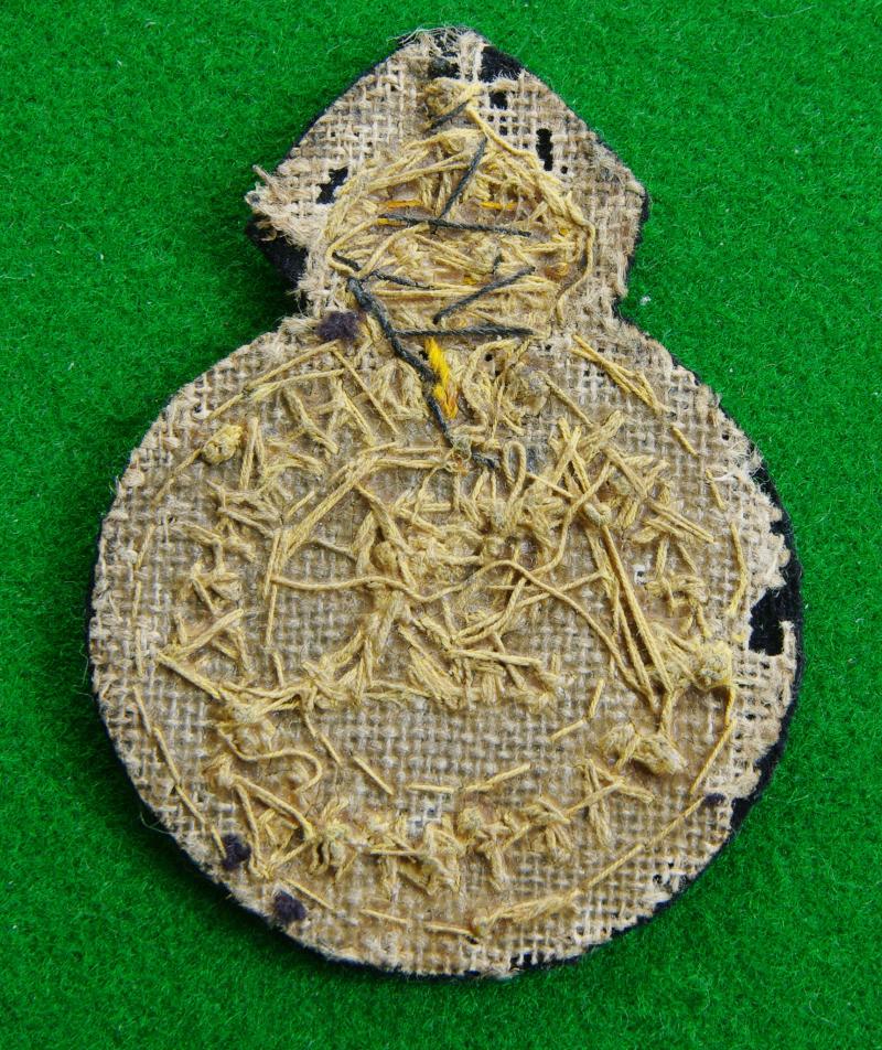 Rare WW I king's crown Inspector's silver bullion wire embroidered cap badge. The cypher of GvR to the centre of a circlet bearing the title, " Royal Ordnance Factories" surmounted by the red velvet inset crown on a shaped black backing.
