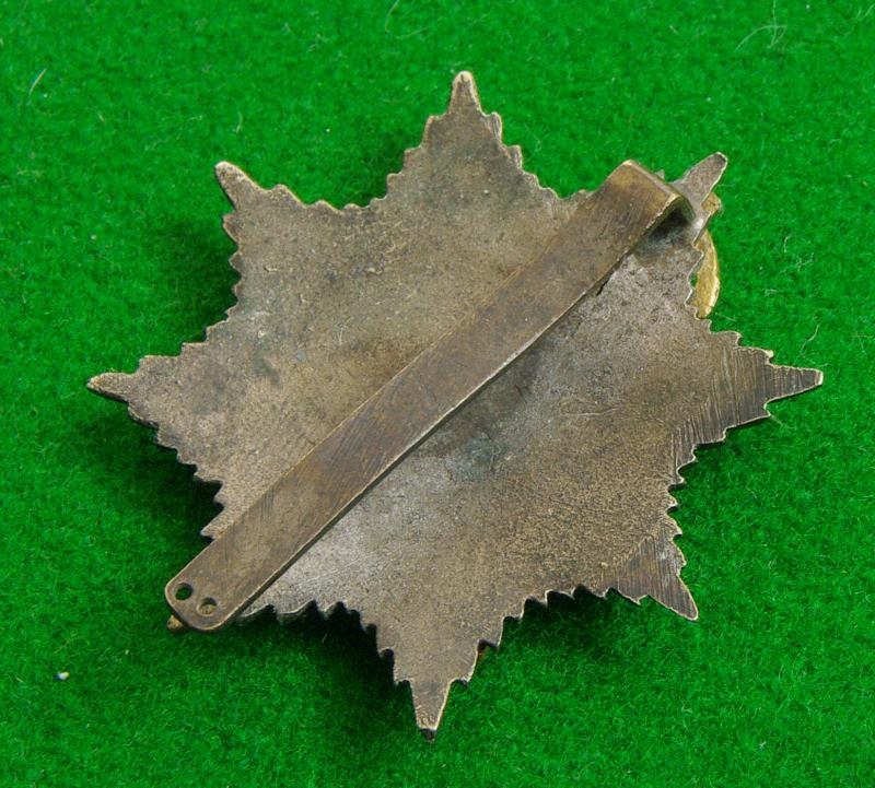 King's crown cast bi / metal cap badge with slider fitting to the reverse worn by the Calcutta Light Horse. the crowned " CLH" monogram and the tri-part motto scroll mounted upon a multi-rayed star. {See my item 25785 for more information on this famous unit}