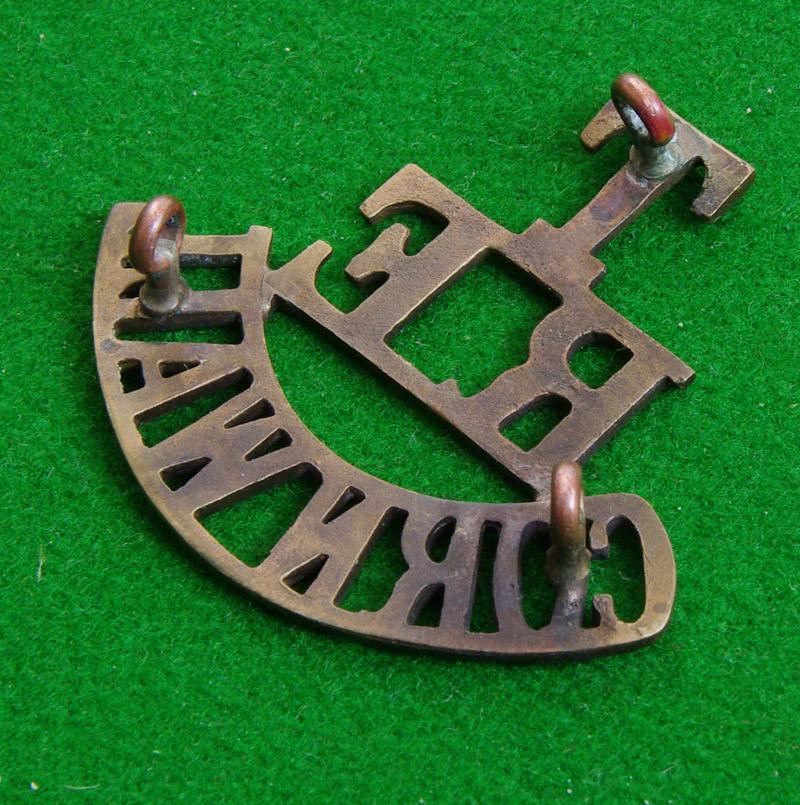 Brass shoulder title, " T / RE / Cornwall" Worn by Cornwall Territorial Fortress Engineers.