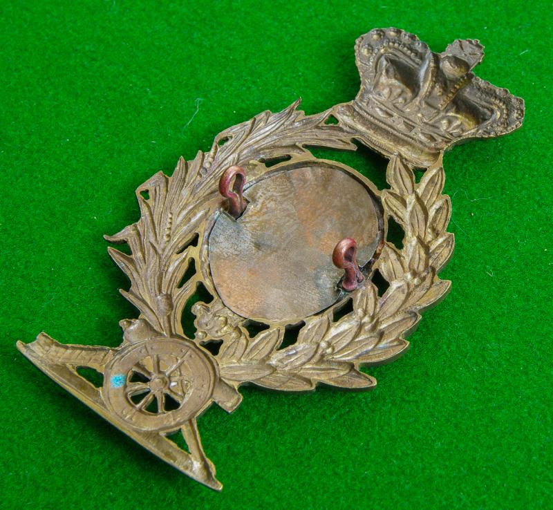 Victorian bi / metal other ranks helmet plate with two loops to the reverse. A Maltese Cross to the centre of a strap bearing the title, " Royal Malta Artillery" within a crowned wreath of laurel and palm above an old style field gun. {Maltese Cross probably a replacement, priced accordingly}