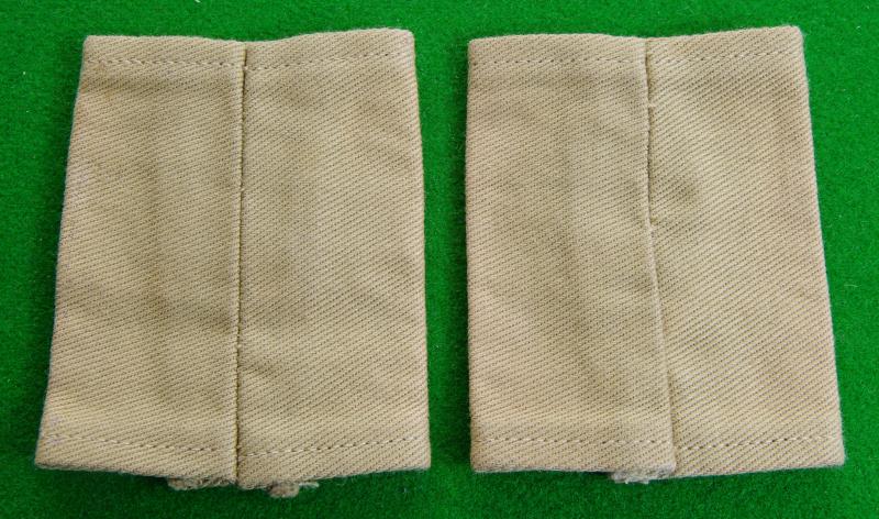 Scarce pair of pale tropical kd shoulder strap slip-ons bearing a green backed major's king's crown and black embroidered title, " A.D.Corps "