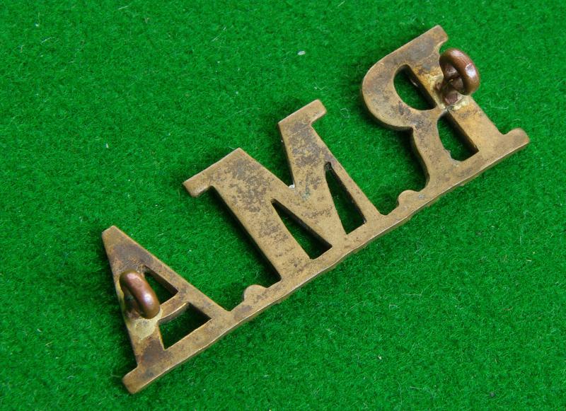Brass shoulder title, " R.M.A."