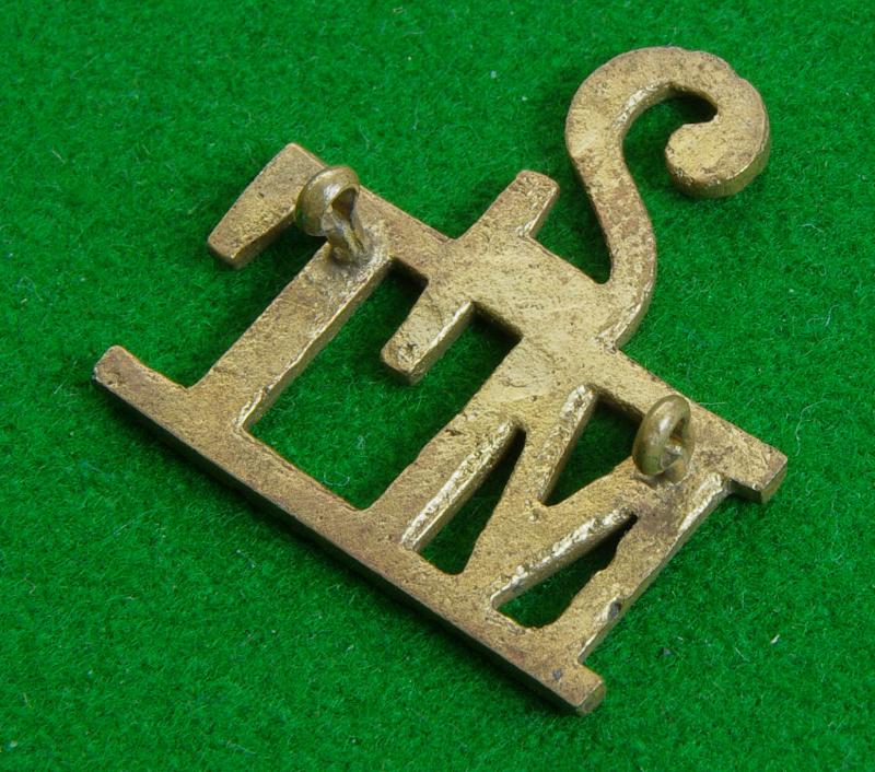 Brass shoulder title, " 2 / M T " worn by the 2nd. Mechanised Transport Company Royal Indian Army Service Corps.