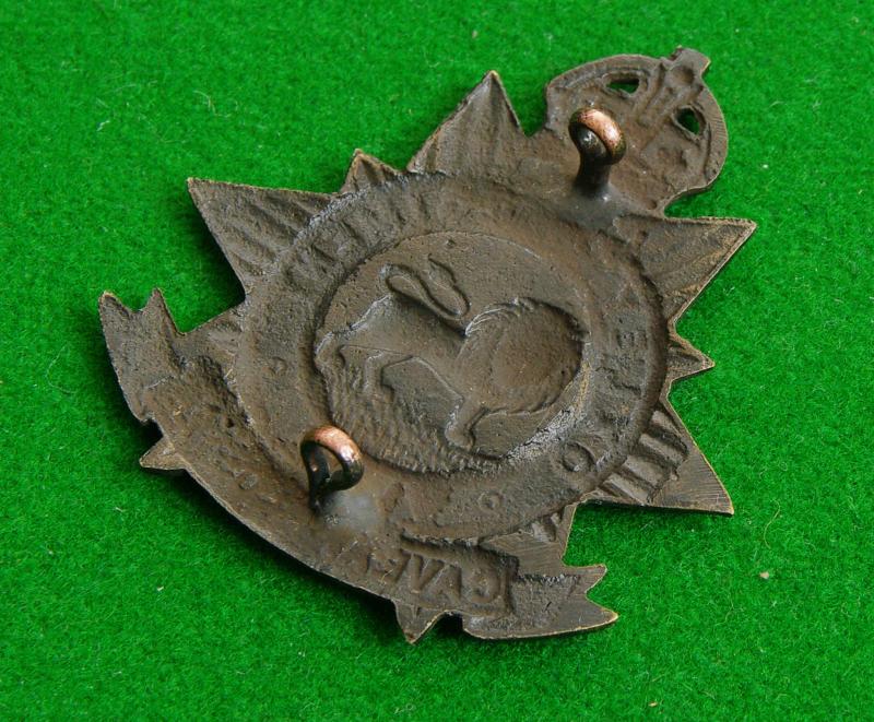 King's crown black-brass cap badge with two loops to the reverse. A lion to the centre of a circlet bearing the title, " Oxley Regiment 15 Bn " on a crowned multi-rayed star above the furled motto scroll, " Caveant Hostes"