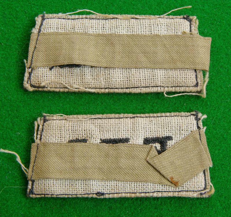 Scarce pair of WW II black on khaki shoulder strap slip-ons, " E.F.I." with canvas loops to the reverse. As part of the N.A.F.F.I. and serving British Troops overseas the members had to wear a uniform.