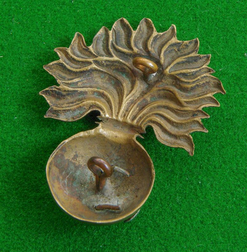 Scarce NCO's? bi /metal glengarry or forage cap badge with two loops to the reverse. The Prince of Wales's plumes mounted upon the ball of a fused grenade. {Approx 5.5 cms high} {Plumes polished}