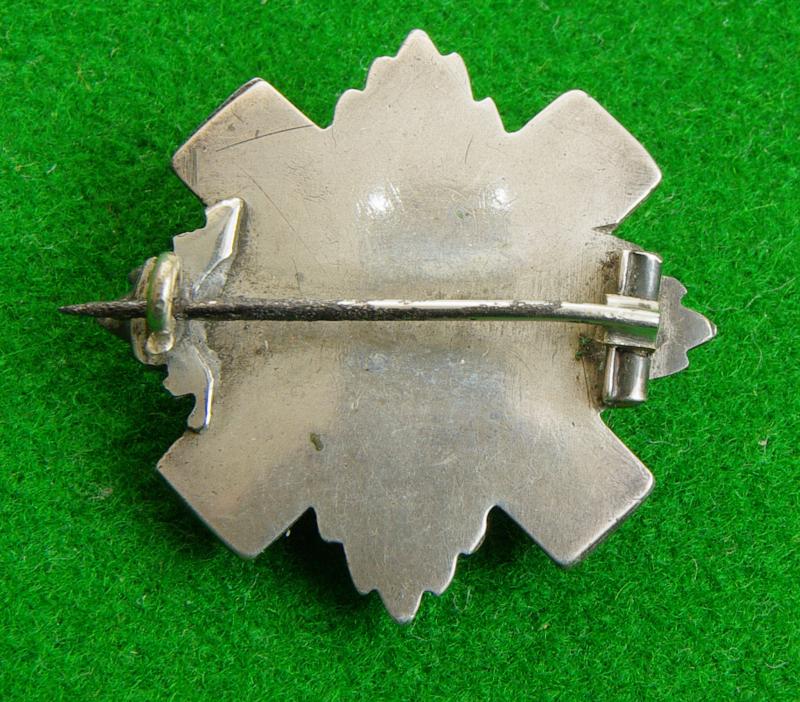 Small heavy silver gilt and enamel field service cap badge or sweetheart brooch with pin fitting to the reverse. The Star of the Order of the Thistle. {Approx 3 x 3 cms}