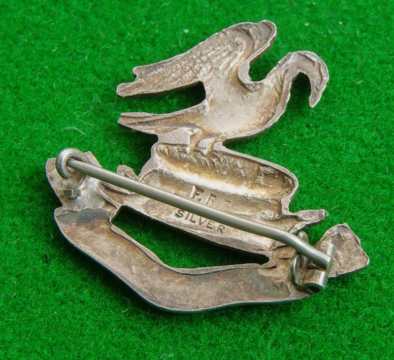 Sterling silver sweetheart brooch with pin fitting and "F.R.G. Sterling Silver" stamps to the reverse, the Crest of Lord Deby. Worn by the 17th-20th. Territorial Battalions King's {Liverpool Regiment raised as part of Kitchener's Army. {Approx 3 cms high}