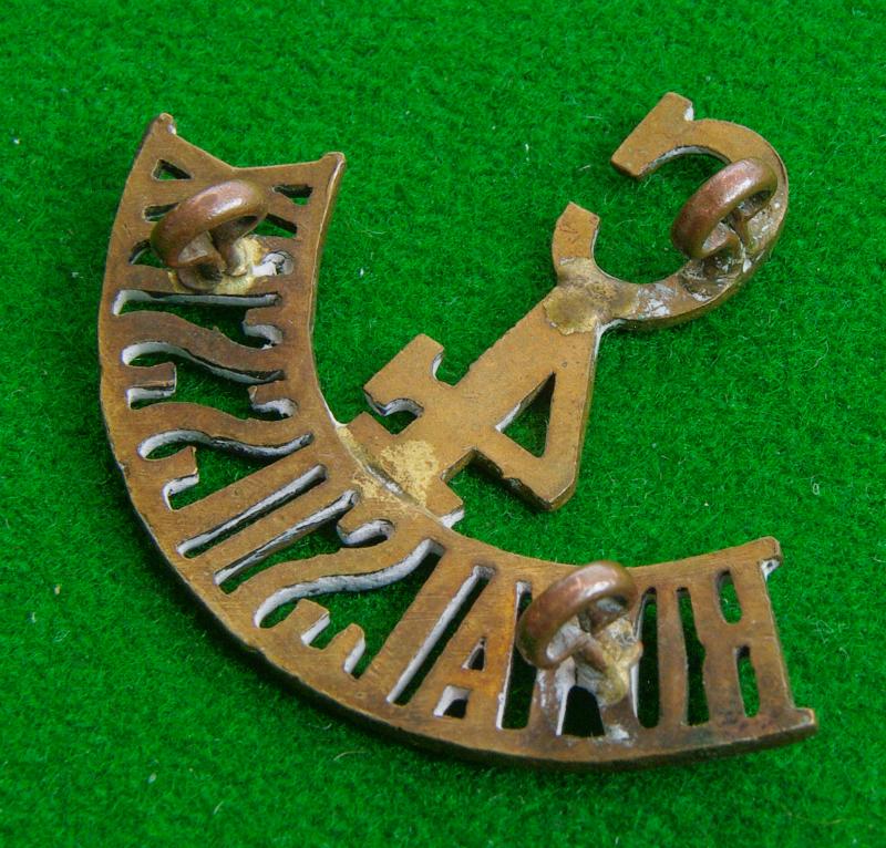 Brass shoulder title, " C / 4 / Royal Sussex" Worn by Cadet Companies affiliated to the 4th. Territorial Battalion Royal Sussex Regiment.