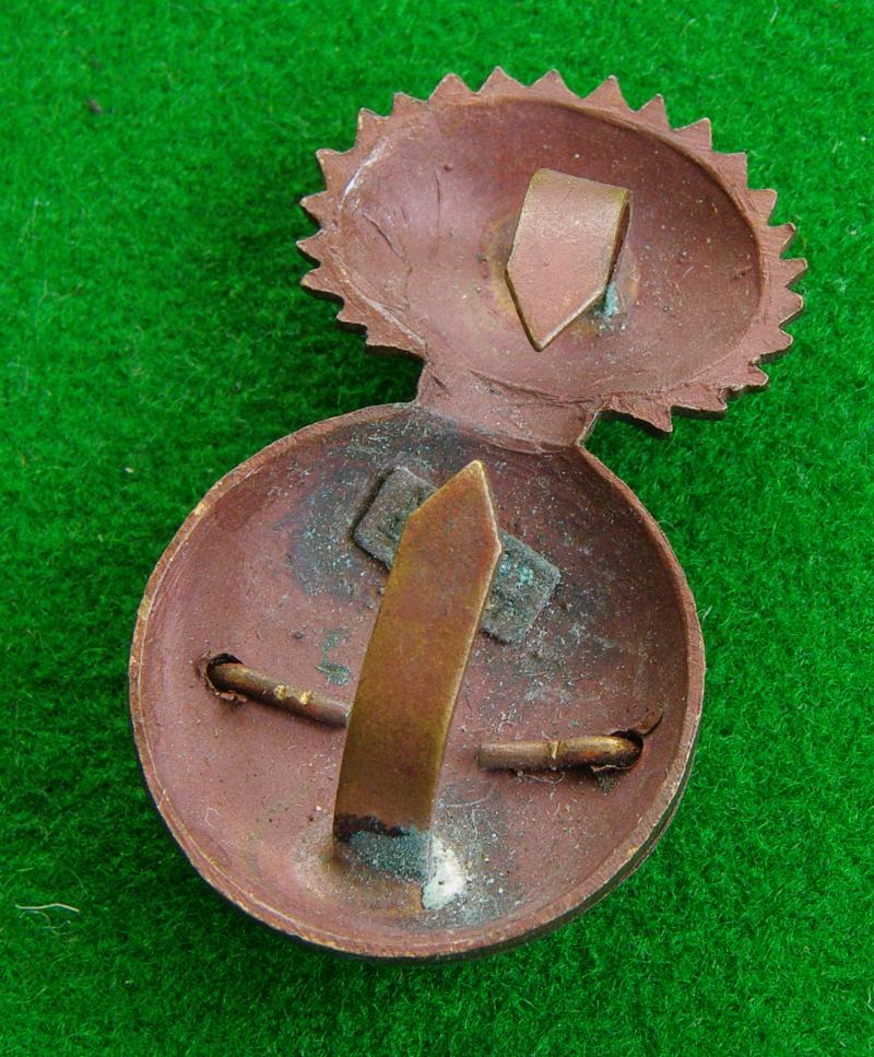 Officers bronze service dress cap badge with two blades and makers details for Gaunt London to the reverse. The Prince of Wales 's plumes to the centre of a circlet bearing the title mounted upon the ball of a fused grenade.