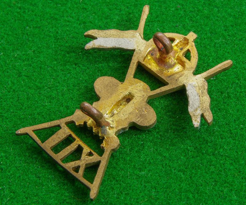 King's crown early pattern cap badge with two loops to the reverse. The Prince of Wales's plumes and the roman numeral, "XII" surmounted by the crown and backed by a pair of crossed cavalry lances.