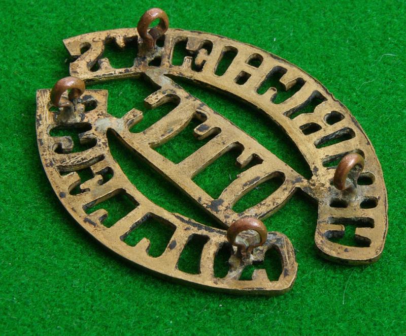 Brass shoulder title, "Churcher's / O.T.C. / College"