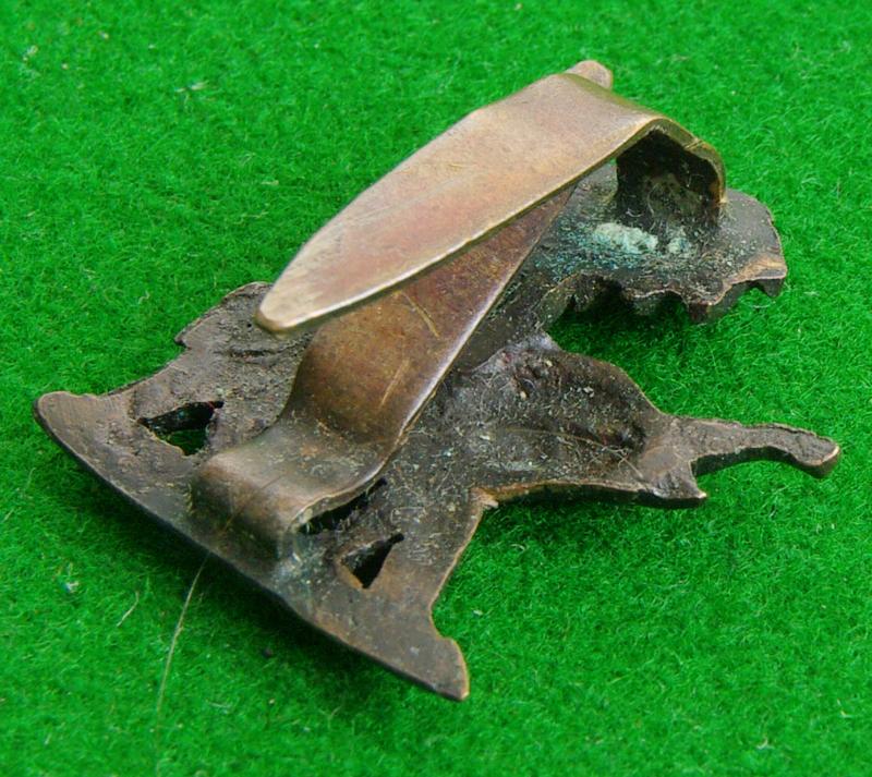 Scarce officers bronze field service cap badge with two blades to the reverse. The elephant and palm tree.