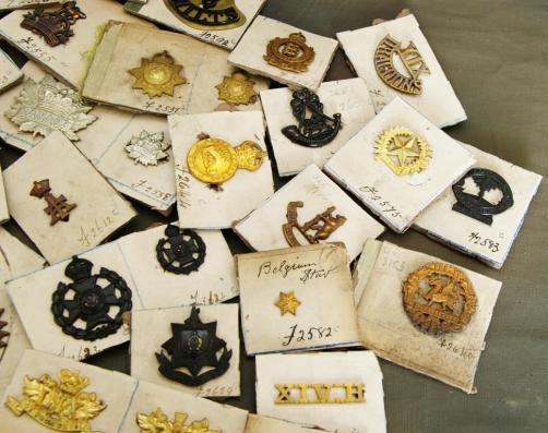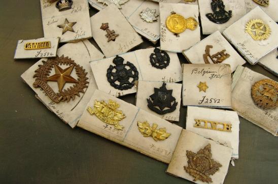 Featured in this upload will be Part 1 of a collection of Gaunt London made British and Colonial badges still affixed to card that has been cut from a Gaunt's sample book. Most have not been removed from the card and still retain their split-pin fixings,whilst a few have been detached and the majority of these bear Gaunt London stamps or plates to the reverse.