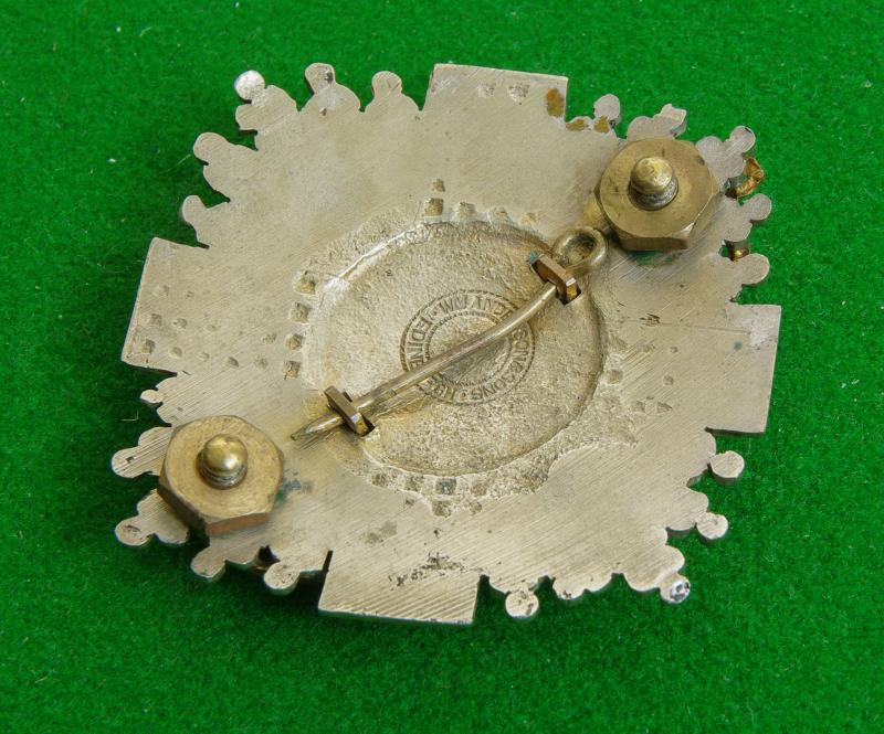 King's crown officers cross-belt plate with two screw bolts and makers details for Anderson Edinburgh to the reverse worn by the 4th.and 5th. Battalions {Queen's Edinburgh Rifles} The Royal Scots. A thistle backed with green enamel to the centre of a crowned circlet bearing the motto above a strung bugle horn mounted upon the Star of the Order of the Thistle.