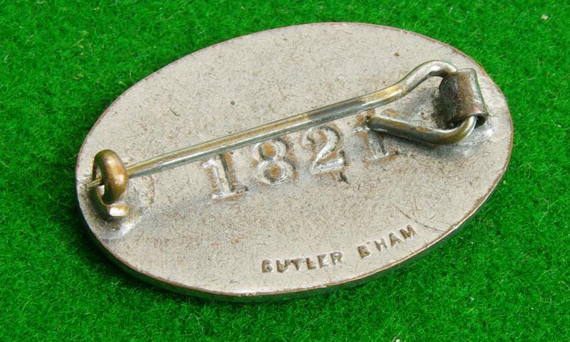 WW II chrome and enamel lapel badge with brooch pin fitting individual issue number and makers details for Butler Birmingham to the reverse. The title, " Dennis" between "National service " and " Bros.Ltd." on a blue enamel oval. Dennis Brothers based in Guildford Surrey, produced Lorries, Fire Engine Pumps and Light Armoured vehicles amongst other items for the War Department during WW II.