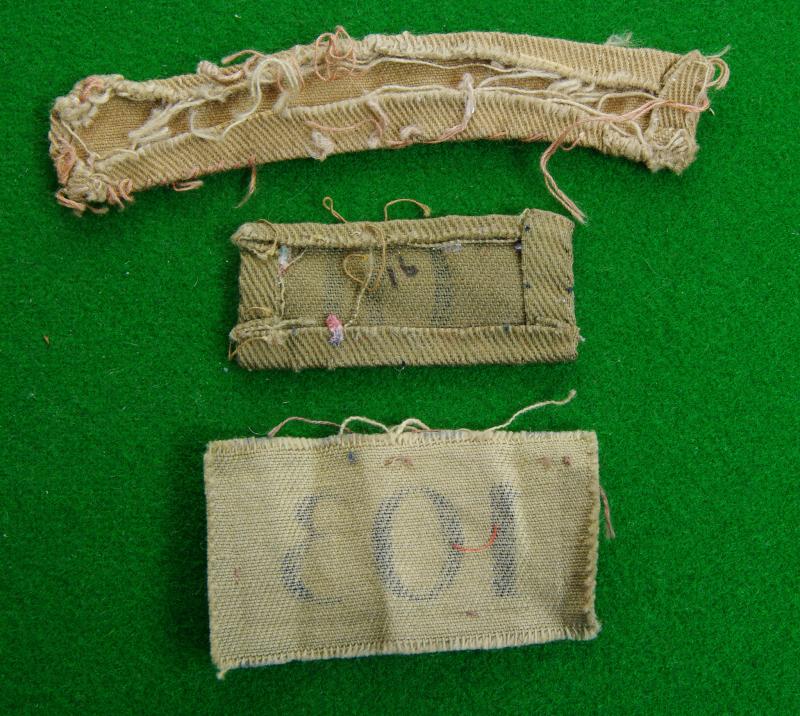 Scarce WW II printed shoulder designation, " Home Guard / COL / 103". Worn by the {103 City of London Home Guard} Anti-Aircraft Rocket Battery situated in West Ham and commanded by Maj.F.C.Walmsley.