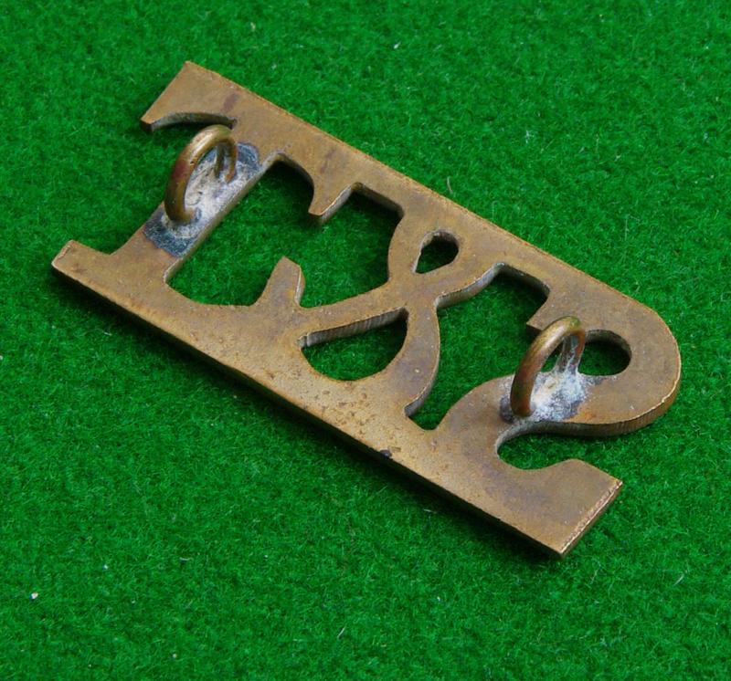 Unusual pattern sheet brass shoulder title with two wire loops to the reverse, " S & T". Worn by the Indian Army Supply and Transport Corps.