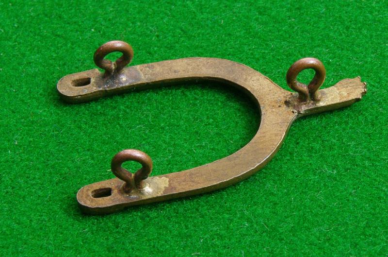 Brass spur sleeve qualification badge with three loops to the reverse. Worn by Riding Instructors, Rough Riders and Remount Trainers.