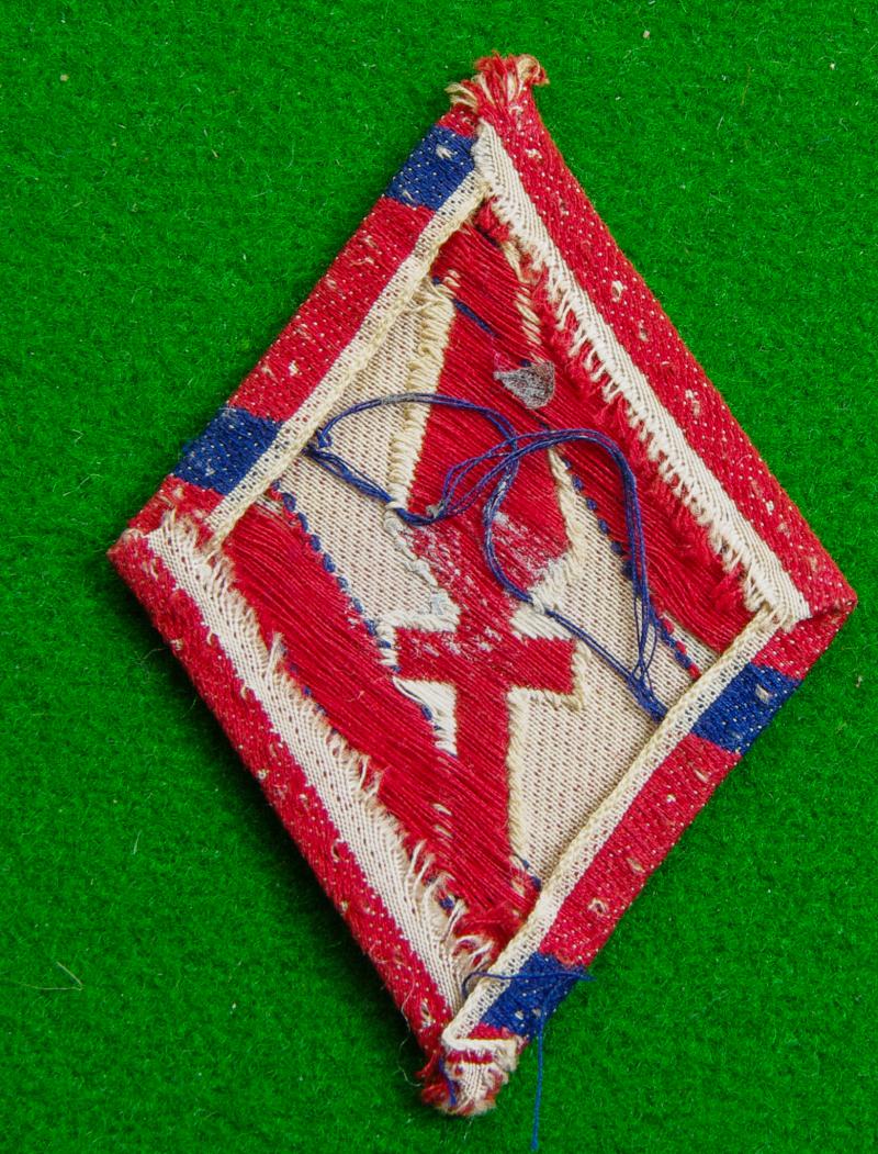 WW II example of the white spearhead on a blue striped, red diamond worn by 1 Corps Royal Engineers.