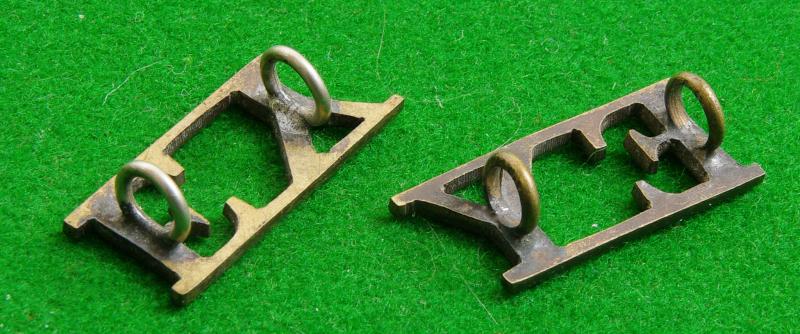 Unusual pair of locally made? brass shoulder titles with wire loops to the reverse, " E Y."