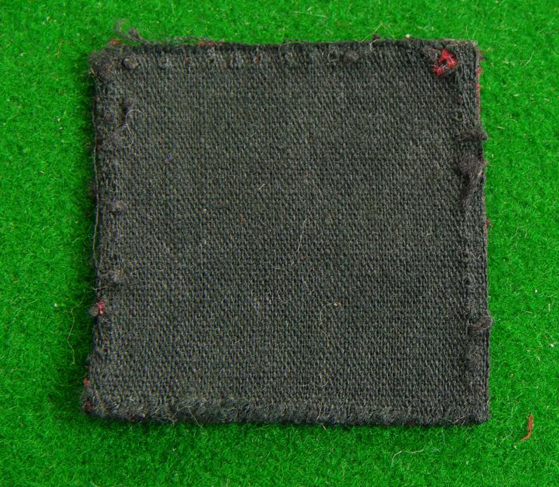 WW II printed example of the half yellow and half blue maltese cross edged in red on a black square background. Worn by Malta Heavy Anti-Aircraft Units of the Royal Artillery.
