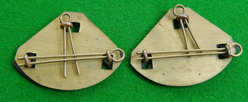 Pair of black-brass shoulder titles complete with original shaped brass back-plates to the reverse, " T / OTC / Inns of Court "