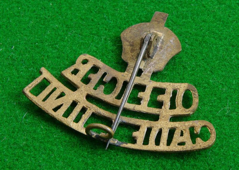 King's crown brass cap badge? shoulder title? with brooch pin fitting to the reverse, "King's crown / Officer / Cadet Unit"