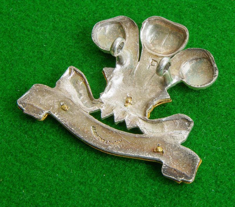 Very fine quality officers silver and gilt cap badge with two loops makers details for Gaunt London and a "P " stamp to the reverse. The Prince of Wales's plumes above the unique honour scroll, " Fishguard"