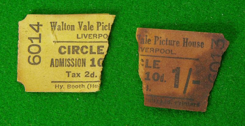WW II officers khaki peaked forage cap unusually bearing a plastic economy issue cap badge to the front with bronze general service buttons to the brown leather chinstrap. The interior has a leather sweatband bearing size label of 6 7/8ths, a light brown silken lining with indistinct soiled makers details for a Liverpool uniform outfitters shop. When purchased a ticket stub for " Walton Vale Picture Palace" was discovered tucked into the sweatband!
