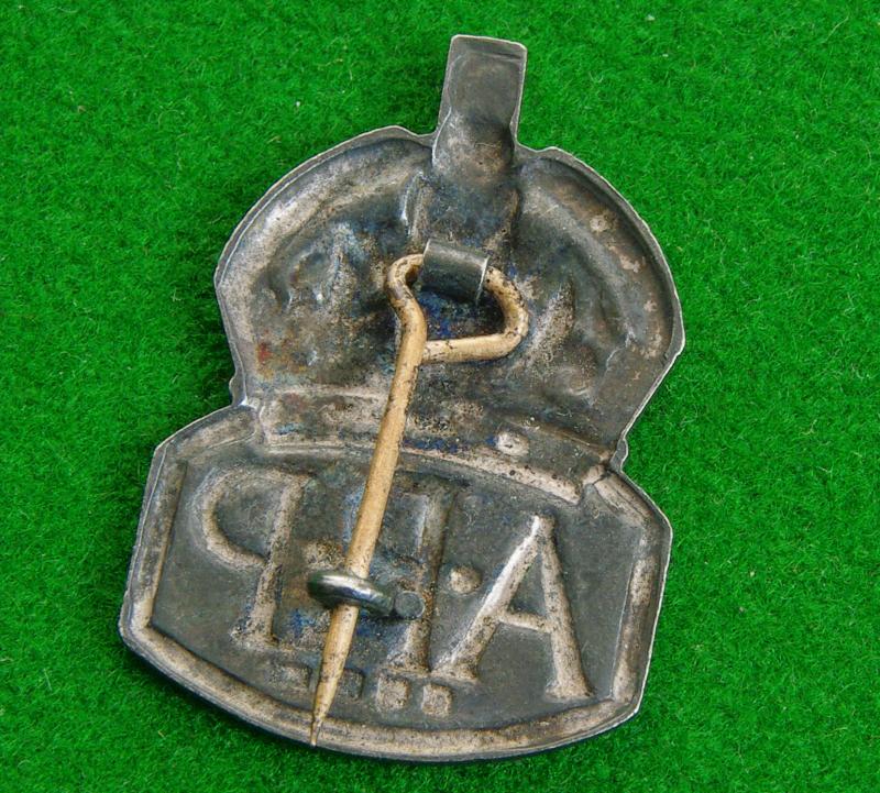 WW II ladies hallmarked silver lapel badge that has also been enamelled. The " A.R.P " monogram backed with blue enamel surmounted by a red enamelled crown. The reverse has a brooch pin fitting and London hallmarks for 1939.