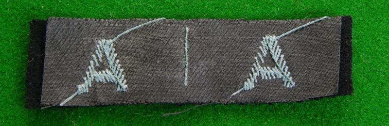 Uncut pair if WW II embroidered in light blue on dark blue letter, "A's". Worn by the Auxiliary Air Force and early in the war by the Women's Royal Air Force.