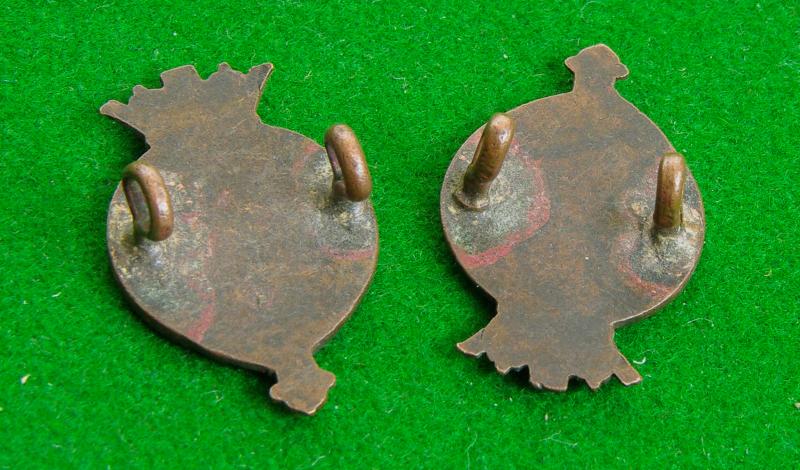 Scarce pair of officers bronze service dress collar badges. The Lancashire Rose to the centre of a strap bearing the title surmounted by the Duke's Coronet.