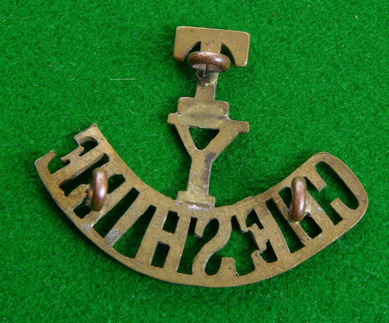 Brass shoulder title, " T / Y / Cheshire"