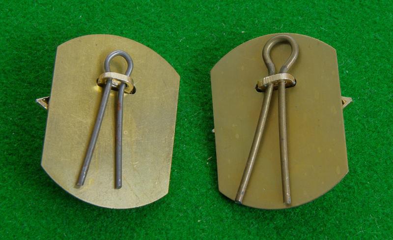 Pair of anodised aluminium collar badges with original back-plates to the reverse. The Yorkshire Rose within a laurel wreath on a multi-rayed star. {Matching collard to my item-30932}
