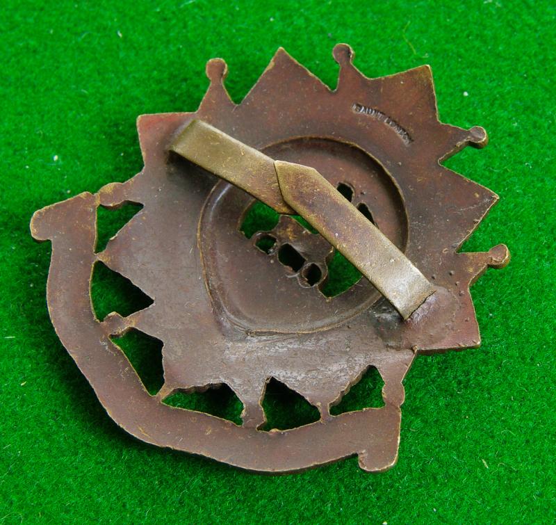 Officers bronze service dress cap badge with two blades and makers details for Gaunt London to the reverse. A Hart standing in water to the centre of a Garter Strap on a maltese cross and a hob-nailed star above the furled title scroll.