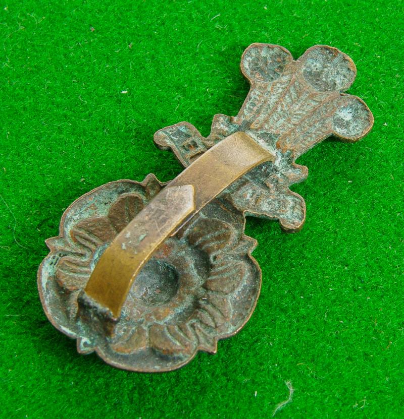 Scarce officers bronze service dress cap badge with two blades to the reverse. The Yorkshire Rose surmounted by the Prince of Wales's plumes.