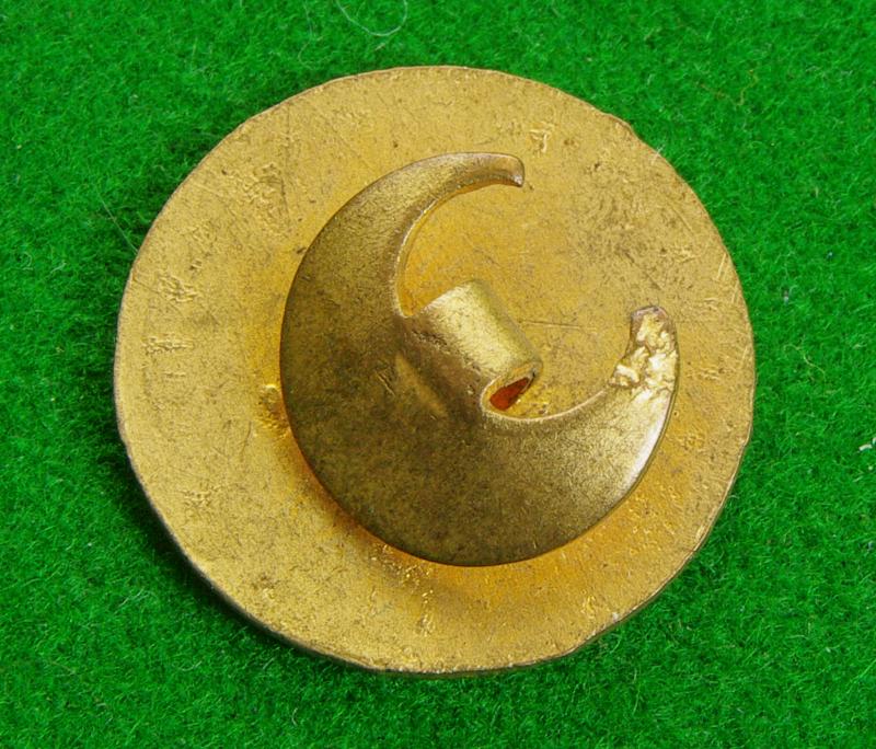 WW I gilt and enamel lapel badge with buttonhole fitting to the reverse. A red enamelled bar bearing the date, "1915" on a white enamel ground within a blue enamelled circlet bearing, " Engaged on Government work" {Hairline fractures to the white enamel}