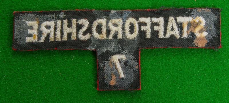 Embroidered in white on red "Second Phase" shoulder title, " Staffordshire / 7"