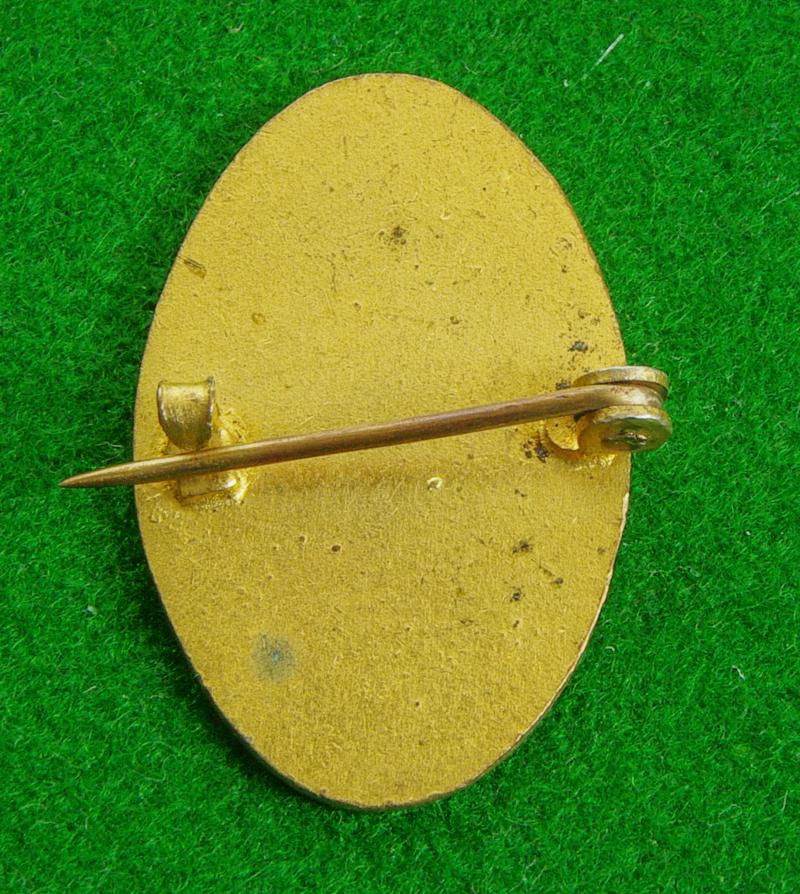 Scarce WW I king's crown brass and enamel lapel badge with brooch pin fitting to the reverse. A pair of crossed rifles within a laurel wreath surmounted by the crown within a blue enamelled oval bearing the title, " Mortlake East Sheen & Barnes Volunteer Training Corps"